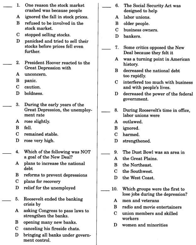 On a separate sheet of paper number your page 1-10. Write the letter of the correct answer next to the number of the question.